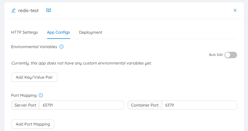 進入頁籤 App Config,設定一下Port對應,redis預設6379 Port,我這邊是設定外部63791對應容器內部6379,這部份看個人需求設定就可以。